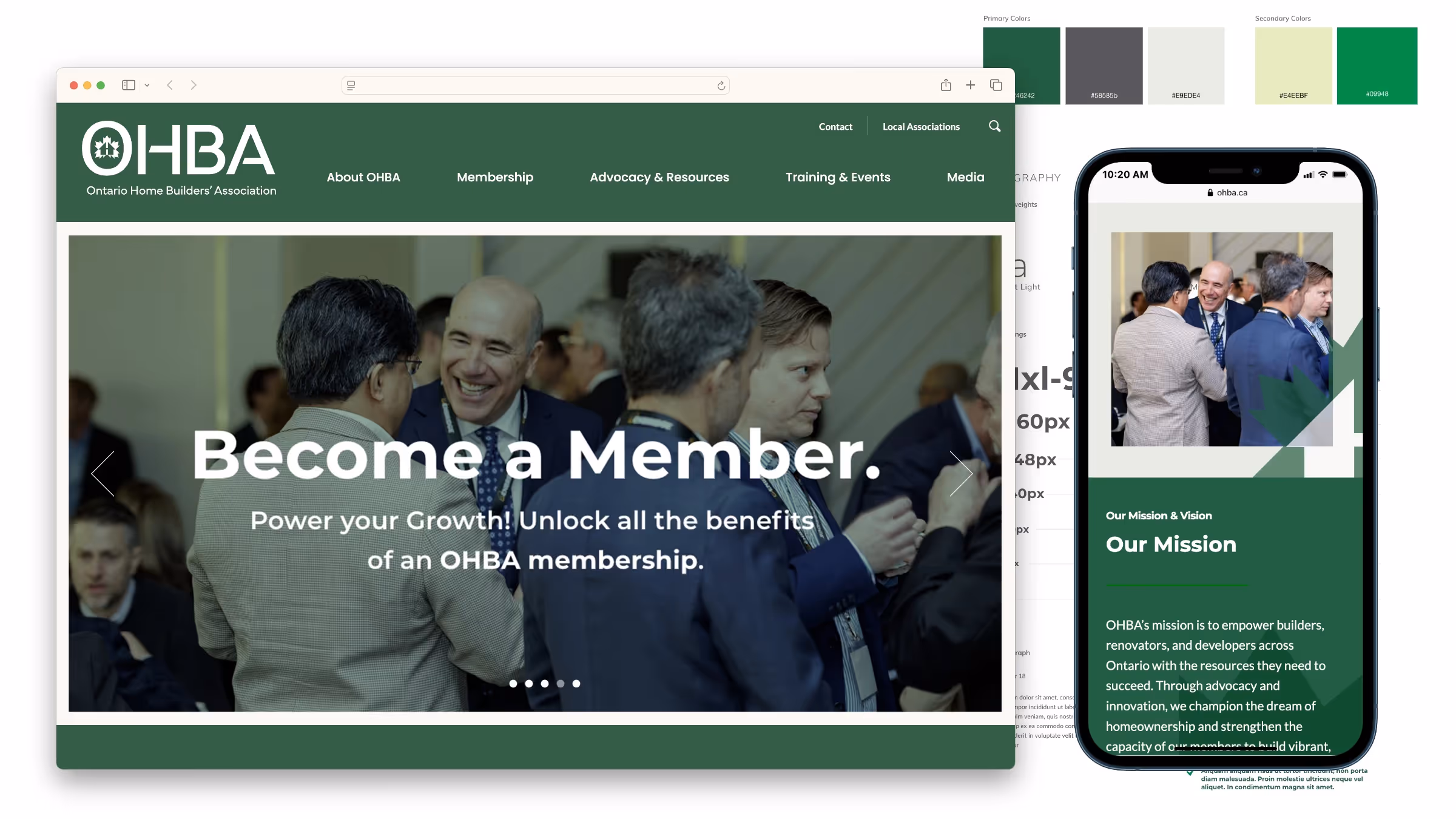 We transformed an overwhelming and cluttered legacy website into a concise, thoughtful, and impactful experience designed to attract new members, clearly communicate the benefits of joining, and showcase OHBA’s work with government, education and their diverse membership base—including builders, renovators, and service professionals.
